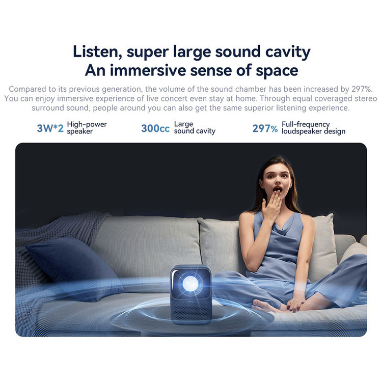 ویدئو پروژکتور ونبو مدل T2 MAX NEW اگر شما هم از انجام بازی یا تماشای فیلم و برنامهها در گوشی موبایل خسته شدهاید و دوست دارید هر لحظه که اراده کردید تصاویر را در اندازه بزرگ پیش روی خود داشته باشید بیشک ویدئو پروژکتور ونبو در ابعاد کوچک، کیفیت تصویری Full HD با رزولوشن 1080 و روشنایی 450 انسی لومن میتواند انتخاب بسیار جذابی برای شما باشد. این پروژکتور کوچک با وزن کم، امکان اتصال به Wi-Fi و بلوتوث را دارد. همچنین دارای سیستم عامل اندروید 9 و حافظه داخلی 1+16 گیگابایتی است. هرگونه فیلم، فایل صوتی و تصویر ثابتی را میتوانید با آن به نمایش بگذارید. در ادامه به بررسی ویدئو پروژکتور شیائومی مدل wanbo t2 max خواهیم پرداخت. مشخصات کلی ویدئو پروژکتور ونبو مدل t2 max new ویدئو پروژکتور ونبو مدل t2 max با وزن بسیار کم در حدود 1100 گرم و ابعاد کوچک که بلندی آن به 15 سانتیمتر میرسد، از ویدیو پروژکتورهای قابل حملی است که طرفداران زیادی دارد. سیستم خنککننده این دستگاه بسیار قوی بوده و دو عدد فن دارد. این ویدیو پروژکتور در بخش اتصالات یک پورت از نوع USB، درگاه ورودی تصویر و صدای آنالوگ و همچنین یک کانکتور ویدیو از نوع HDMI دارد. سیستم عامل اندروید 9 در این دستگاه هوشمند به کار رفته است. این ویدئو پروژکتور علاوهبر اینکه میتواند از طریق بلوتوث 4.0 متصل شود، میتواند از طریق Wi-Fi به سایر دستگاهها از جمله: تلویزیون، تلفن همراه، تبلت، لپتاپ و مانیتور کامپیوتر هم وصل شود. کیفیت تصویر ویدئو پروژکتور ونبو مدل t2 max پروژکتور wanbo به دلیل رزولوشن 1080 × 1920 پیکسل و کیفیت full HD تصویری باکیفیت ارائه میدهد. همچنین کنتراست تصویر در این پروژکتور 2000:1 است که برای یک ویدئو پروژکتور میزان کنتراست بسیار خوبی به حساب میآید. تکنولوژی HDR10 در این پروژکتور سبب شده است که تصاویر بسیار طبیعی و رنگها به صورت مجزا و بدون درهمآمیختگی به نمایش در بیایند. ویژگیهای پخش تصویر ویدیو پروژکتور wanbo مدل t2 max یکی از جذابترین و کاربردیترین ویژگیهای پروژکتور ونبو شیائومی این است که میتوانید آن را بدون توجه به زاویه در هر سمت قرار دهید و همچنان یک تصویر مربعی شکل را ببینید. همچنین شما این امکان را دارید تا 40 درجه از سمت راست، چپ یا عمودی به صورت جداگانه زاویه تصویر را تغییر دهید تا به زاویه مطلوب خود دست پیدا کنید. در این پروژکتور از تصاویر بازتابی پراکنده استفاده شده است تا تماشا کردن فیلم چشمان شما را خسته نکند. پروژکتور wanbo میتواند میدان دیدی بین 1.5 تا 3 متر را در برابر دیدگان شما قرار دهد که معادل 40 الی 120 اینچ میشود. شما با این ویژگی میتوانید تصمیم بگیرید تمام یا بخشی از تصویر مورد نظر خود را ببینید. همچنین در این پروژکتور نیازی به تنظیم دستی زوم نیست، زیرا این تنظیم به صورت اتوماتیک انجام میشود. ویژگی های دیگر ویدئو پروژکتور عمر لامپ ویدئو پروژکتور ونبو شیائومی در حالت اقتصادی به 20000 ساعت میرسد. شدت روشنایی این پروژکتور 450 اَنسی لومِن است. ویدئو پروژکتور wanbo از برق مستقیم به عنوان منبع تغذیه استفاده میکند و باتری ندارد. پروژکتور ونبو t2 max new دارای ریموت کنترل است و یک رم یک گیگابایتی و یک حافظه 16 گیگابایتی دارد. همچنین 2 عدد بلندگوی 3 وات در این پروژکتور تعبیه شدهاند. این بلندگوها مجهز به تکنولوژی Hi-Fi هستند که صدا را بدون نویز و تغییر کیفیت به گوش فرد میرسانند. ویدئو پروژکتور دیجی کالا برای بررسی تخصصی و مقایسه انواع ویدئو پروژکتورها دیجی کالا میتواند مرجع مناسبی برای شما باشد. شما میتوانید با مقایسه ویدئو پروژکتور ونبو مدل t2 max با مدلهای قبلی شیائومی یا برندهای دیگر به خوبی مزیتهای این ویدئو پروژکتور را متوجه شوید. کیفیت صدا و تصویر، راحتی حمل و عمر بالای دستگاه از جمله مواردی هستند که میتوانند به عنوان مزیت برای این دستگاه به حساب آیند. چرا باید ویدئو پروژکتور ونبو مدل t2 max را انتخاب کنیم؟ اگر میخواهید یک ویدئو پروژکتور خریداری کنید باید مواردی همچون کیفیت صدا و تصویر، حمل آسان، Wi-Fi، 