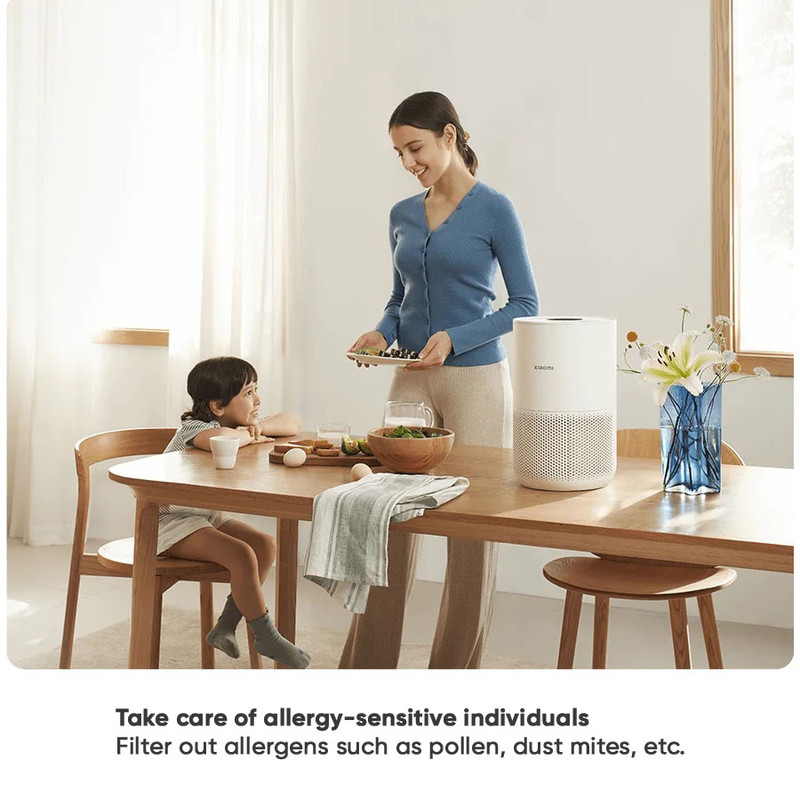 دستگاه تصفیه هوای هوشمند شیائومی 4 کامپکت، هوای تمیز را در جایی که به آن نیاز دارید ارائه میدهد. این یک محصول نوآورانه، به ویژه برای افراد حساس به آلرژی است. همانطور که از نام آن پیداست، به عنوان جمعوجور طراحی شده است. میتوانید برای میز و کف از دستگاه تصفیه هوا استفاده کنید. مجهز به فیلتر 3 در 1 است. ذرات کوچکی به اندازه 0.3 میکرون را به دام میاندازد. اندازه دستگاه تصفیه هوای هوشمند شیائومی 4 کامپکت کوچک است؛ اما ویژگیهای آن بزرگ است. هوای تازه آن، خستگی را از بین میبرد و از سلامت تنفسی خانواده شما محافظت میکند. بی سر و صدا کار میکند، زمانی که دستگاه تصفیه هوا کار میکند میتوانید کار کنید. دستگاه تصفیه هوای هوشمند 4 کامپکت 99.97 درصد ذرات کوچک 0.3 میکرون را به دام میاندازد. دارای فیلتر 3 در 1 برای تصفیه است. میتواند آلایندههای هوای داخل خانه را لایه به لایه از بین ببرد. برخلاف دیگر دستگاههای تصفیه هوای شیائومی که طراحی جعبهای شکل دارند، دستگاه تصفیه هوای هوشمند 4 کامپکت دارای فرم استوانهای و رومیزی است. وزن آن فقط 2.2 کیلوگرم و دارای قطر 220 میلیمتر و ارتفاع 355 میلیمتر است. علاوه بر این، دارای 230 متر مکعب بر ساعت CADR و سنسور PM 2.5 IR است. در حالی که فاقد حسگرهای دما و رطوبت است که در سری 4 تصفیهکننده هوای هوشمند بزرگتر یافت میشود، مدل جمعوجور میتواند بوی باکتریها و آلرژنهای رایج مانند موهای حیوانات خانگی و گرده را فیلتر کند. علاوه بر قابلیت حمل، از مزایای دستگاه تصفیه هوای هوشمند 4 کامپکت، میتوان به میزان نویز و مصرف انرژی اشاره کرد. این پاککننده تنها با حداکثر توان مصرفی 27 وات در مقایسه با نسخه Lite با خروجی 33 وات رتبهبندی شده است. سطح نویز در حالت خواب 20 دسیبل است و در حداکثر تمیز کردن به 50 دسی بل میرسد.